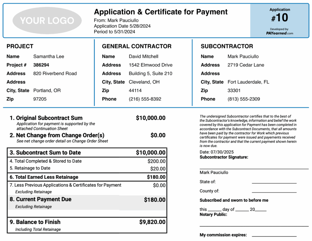 Built for Contractors Using Industry-Standard “Application for Payment” Format