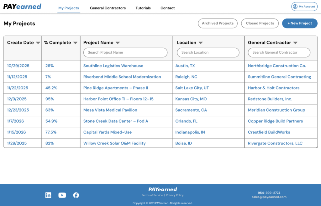 Customize your view, search across projects, and sort by what matters—project, location, or general contractor. Stop hunting for jobs and start billing them.